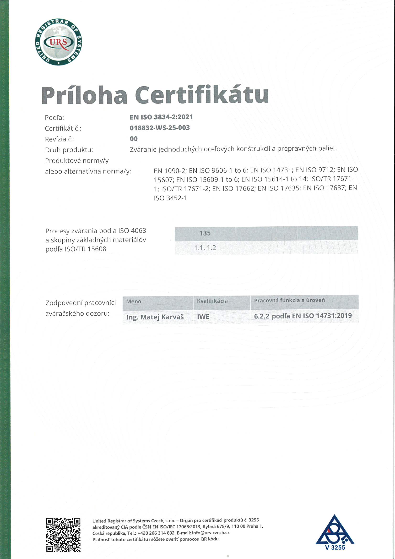 - ISO 9606 – Certifikát zváračskej skúšky
